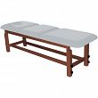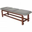 Leżanka drewniana z regulowaną wysokością oraz regulowanym podgłówkiem i podnóżkiem.