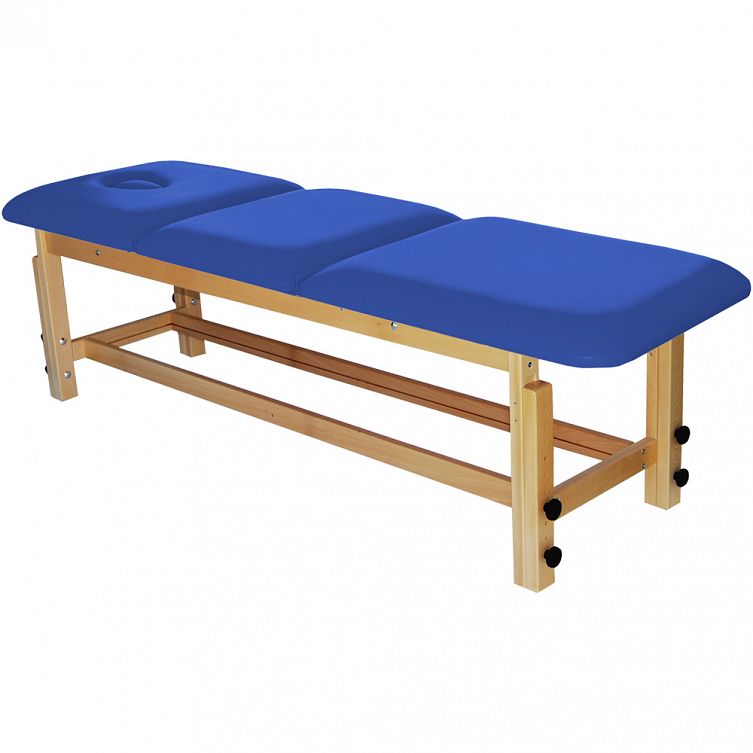 Leżanka LD-R02 posiada stabilną konstrukcję z drewna bukowego. Model LD-R02 ma regulowaną wysokość i trzy częściowe leże z regulowanym podgłówkiem w standardzie z wycięciem na twarz i zatyczką. Regulacja wysokości leżanki skokowa. Podgłówek oraz środkowa i tylna część blatu regulowane są za pomocą mechanizmu typu rastomat.
