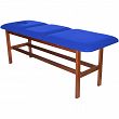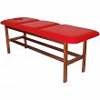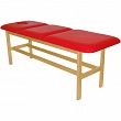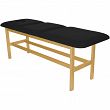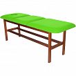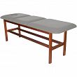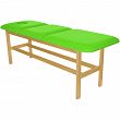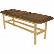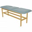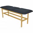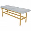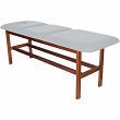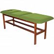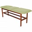 Leżanka drewniana ze stałą wysokością oraz regulowanym podgłówkiem i podnóżkiem.