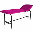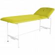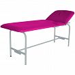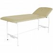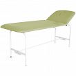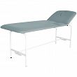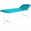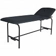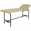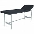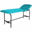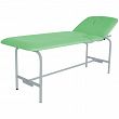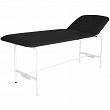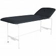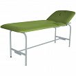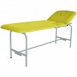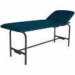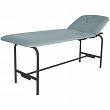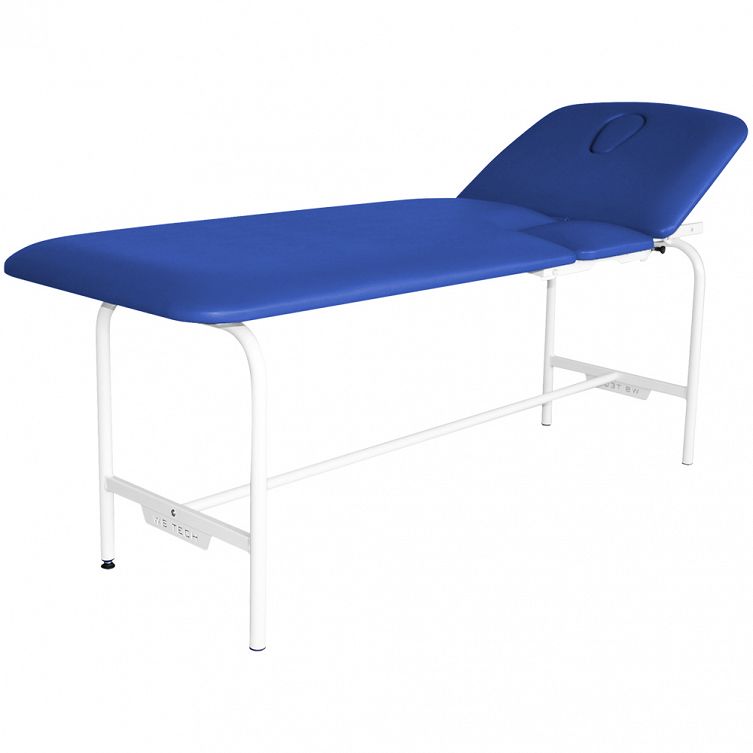 Leżanka metalowa ze stałą wysokością, regulowanym podgłówkiem i wycięciem bocznym.