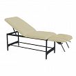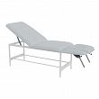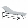 Leżanka stacjonarna ze stałą wysokością, regulowanym podgłówkiem i podnóżkiem.
