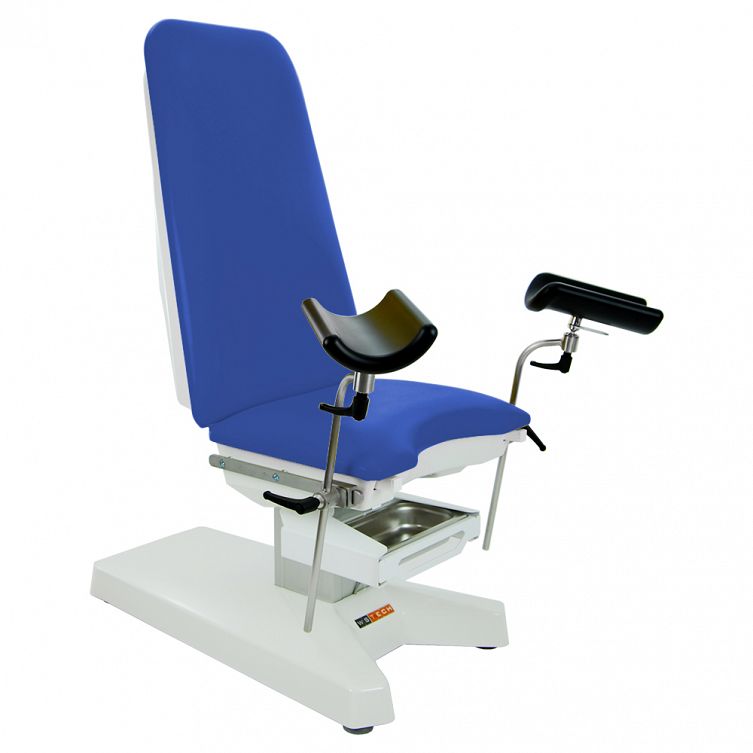 Fotel ginekologiczny na kolumnie FG-K01 to połączenie eleganckiego wzornictwa z funkcjonalnością i praktycznością. Dzięki zastosowaniu obudowy z tworzywa ABS fotel FG-K01 jest elegancki, smukły i bardzo dobrze prezentuje się zarówno w nowoczesnych i tradycyjnych gabinetach, dodatkowo jest łatwy w utrzymaniu czystości i higieny ze względu na zabudowane elementy konstrukcyjne. Model FG-K01 dzięki zastosowaniu trzech niezależnych siłowników elektrycznych sterowanych pilotem ręcznym ma bardzo dobre parametry techniczne co zapewni w pełni funkcjonalny produkt. W standardzie fotel wyposażony jest w komplet euro szyn montowany po bokach siedziska, komplet podkolanników oraz miskę ze stali nierdzewnej umieszczoną pod siedziskiem.