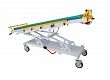 Wózek do transportu chorego z podgłówkiem regulowanym za pomocą sprężyny gazowej. Posiada regulację przechyłu Trendelnburga.