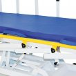 Wózek do transportu chorego z podgłówkiem regulowanym za pomocą sprężyny gazowej. Posiada regulację przechyłu Trendelnburga oraz anty-Trendelanburga.