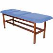 Leżanka drewniana ze stałą wysokością oraz regulowanym podgłówkiem i podnóżkiem.